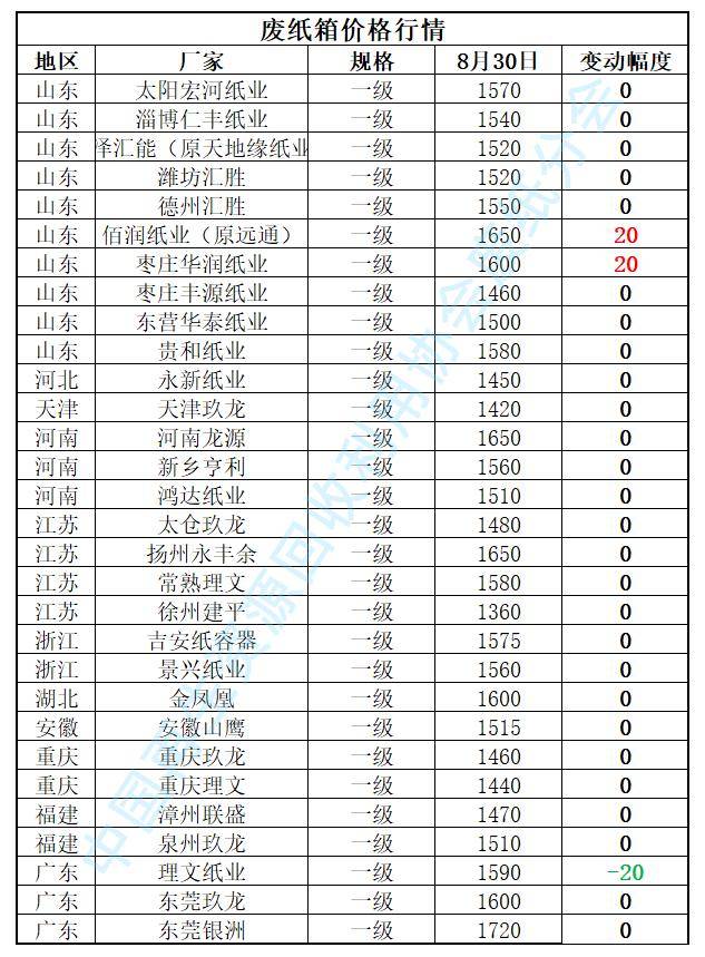 今日中国再生资源废纸价格指数为1565元/吨,与上一个工作日相比下调1元/吨。望当地废纸商家密切关注价格走势,谨慎操作!