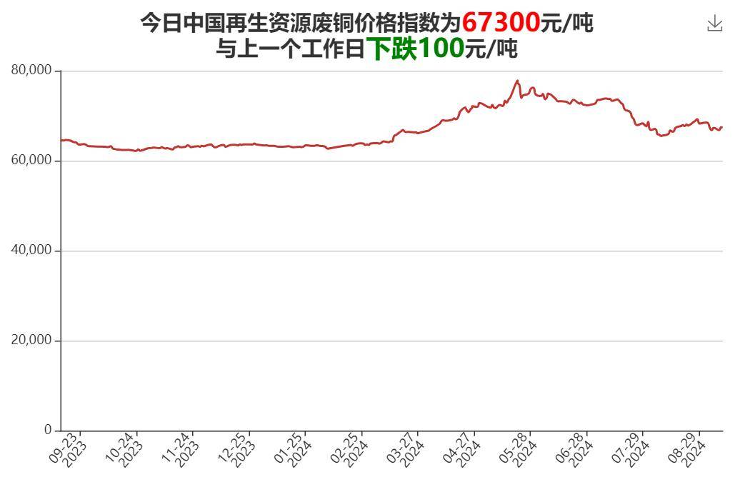中国再生资源价格指数废铜价格指数说明:指数主要反映发布当天的国内光亮线(含量≥99%)的废铜平均采购价格水平。该指数是以全国主要废铜消费省的光亮线采购价为基础,经加权校准,最终产生。