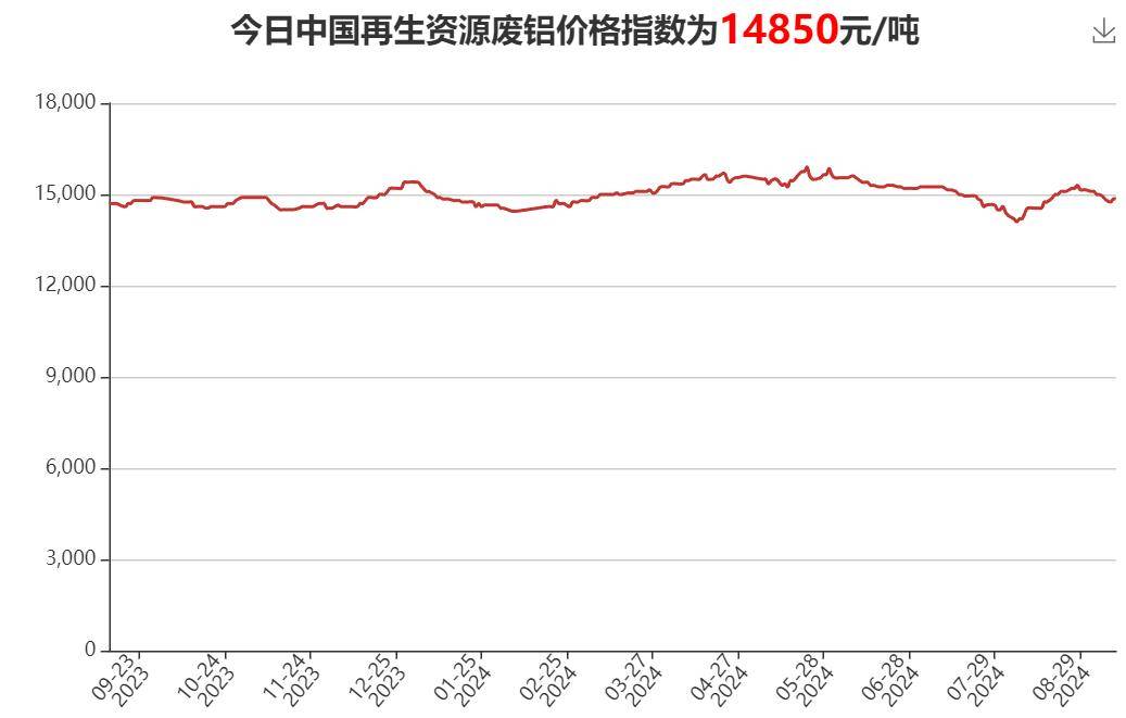 废铝:今日中国再生资源废铝价格为14850元/吨。