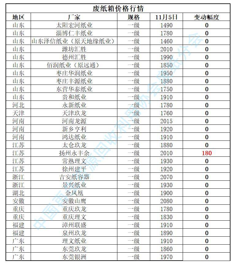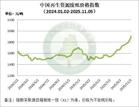 今日中国再生资源废纸价格指数为1914元/吨,与上一个工作日相比上调6元/吨。望当地废纸商家密切关注价格走势,谨慎操作!
