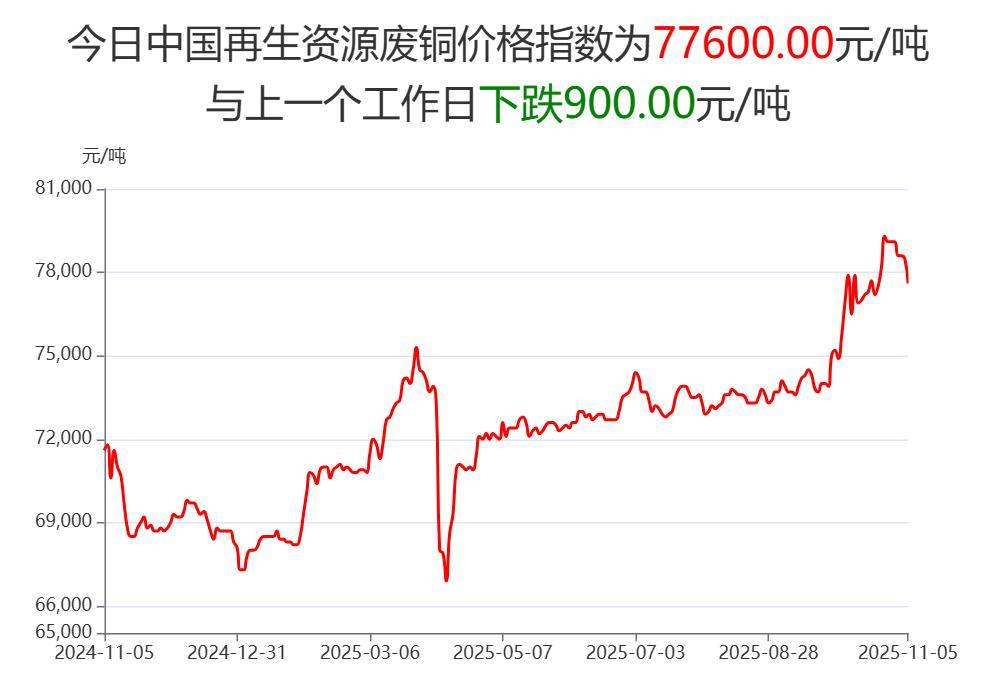 废铜:今日中国再生资源废铜价格为77600元/吨。望当地废铜商家密切关注价格走势,谨慎操作!