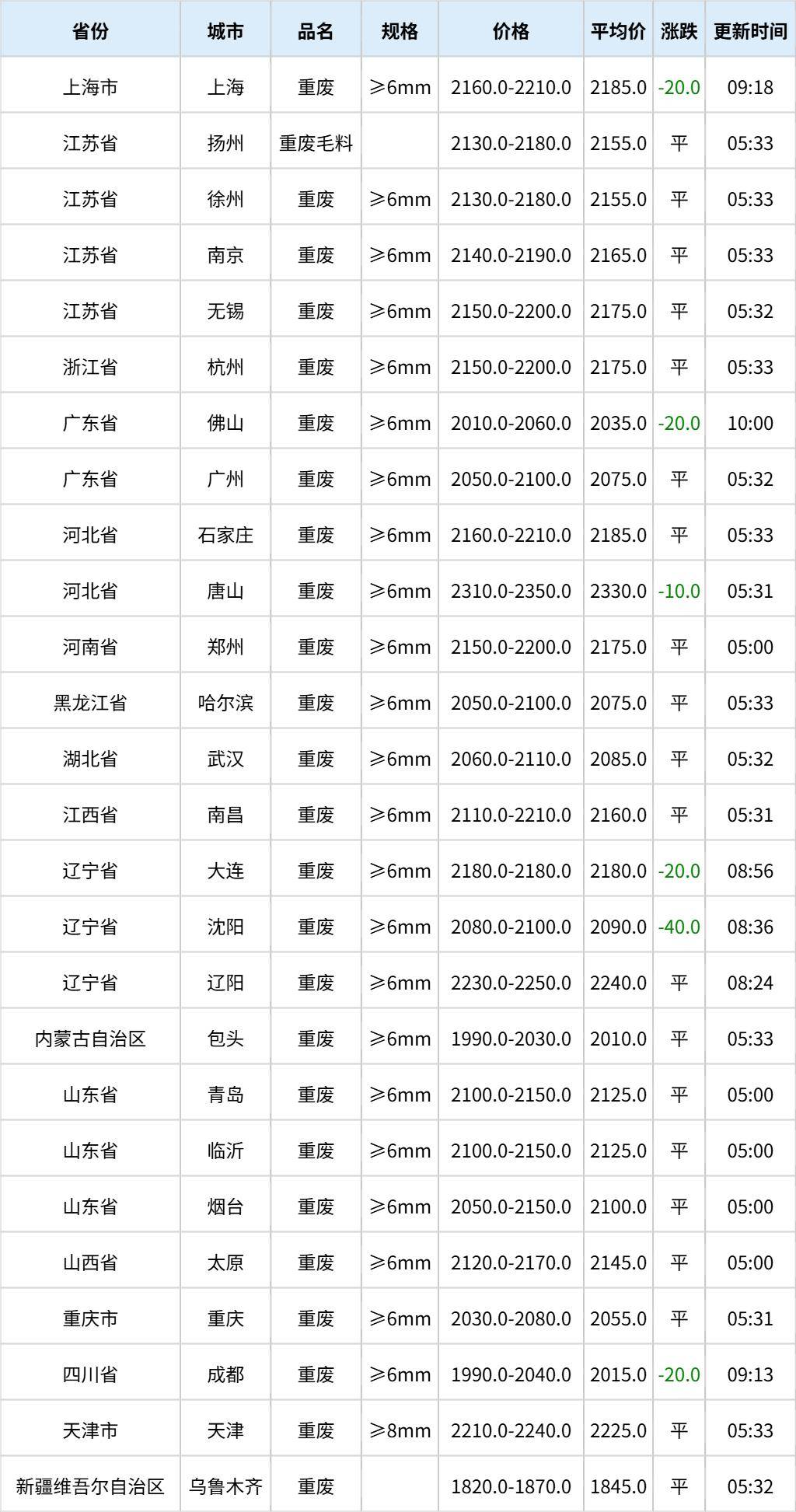 11月5日全国各地废钢价格行情一览