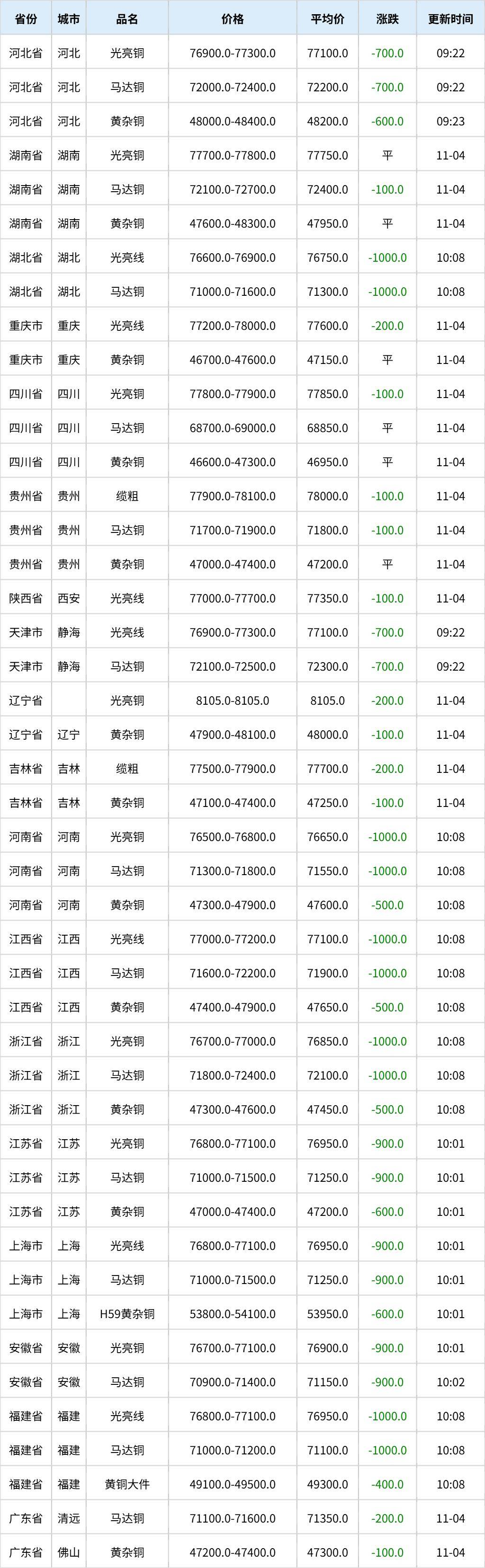 11月5日全国各地废铜价格行情一览