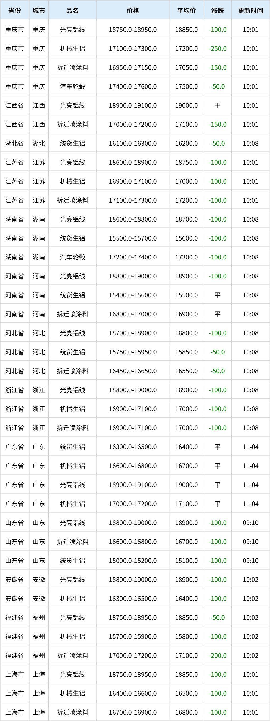 11月5日全国各地废铝价格行情一览