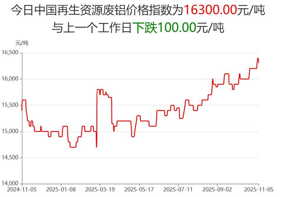 废铝:今日中国再生资源废铝价格为16300元/吨。望当地废铝商家密切关注价格走势,谨慎操作!