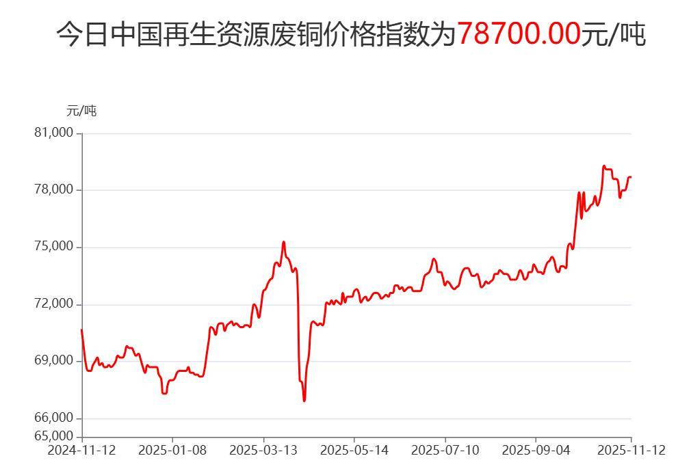 废铜:今日中国再生资源废铜价格为78700元/吨。望当地废铜商家密切关注价格走势,谨慎操作!
