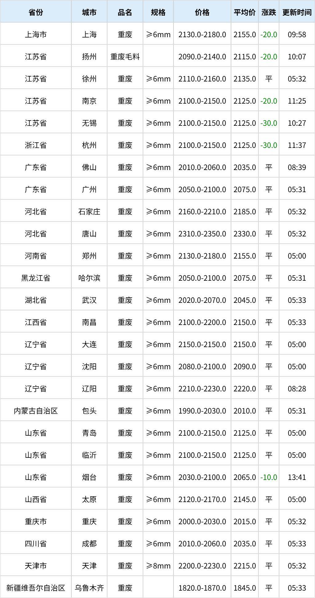 11月12日全国各地废钢价格行情一览