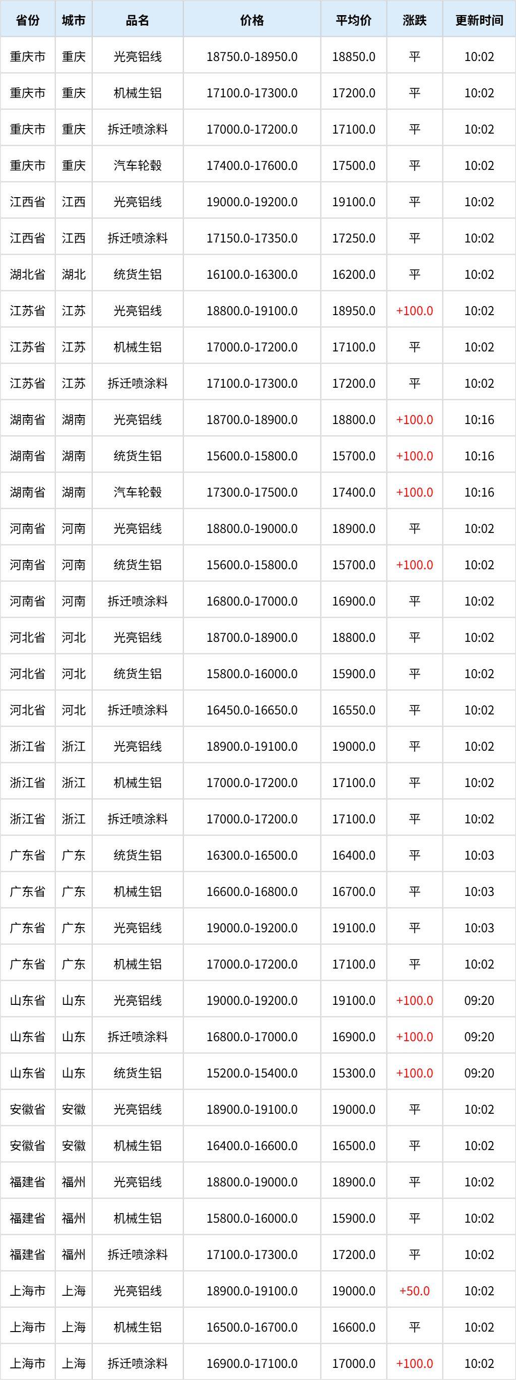 11月12日全国各地废铝价格行情一览