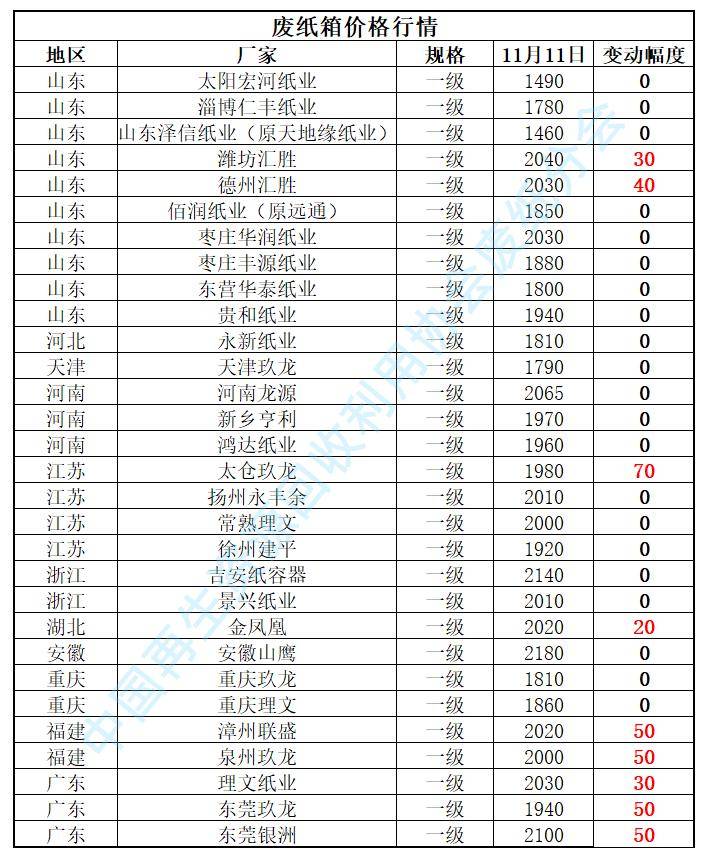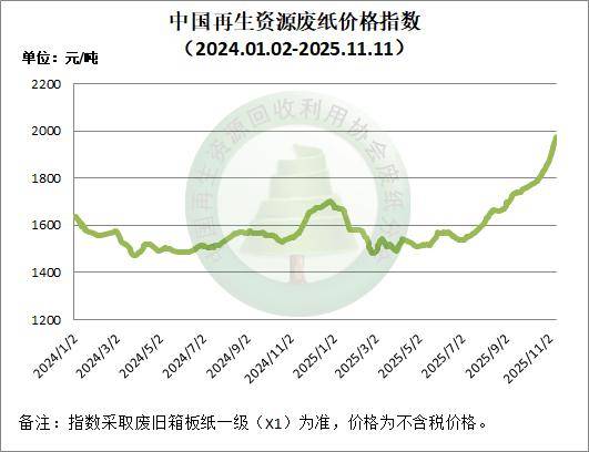 今日中国再生资源废纸价格指数为1977元/吨,与上一个工作日相比上调16元/吨。望当地废纸商家密切关注价格走势,谨慎操作!
