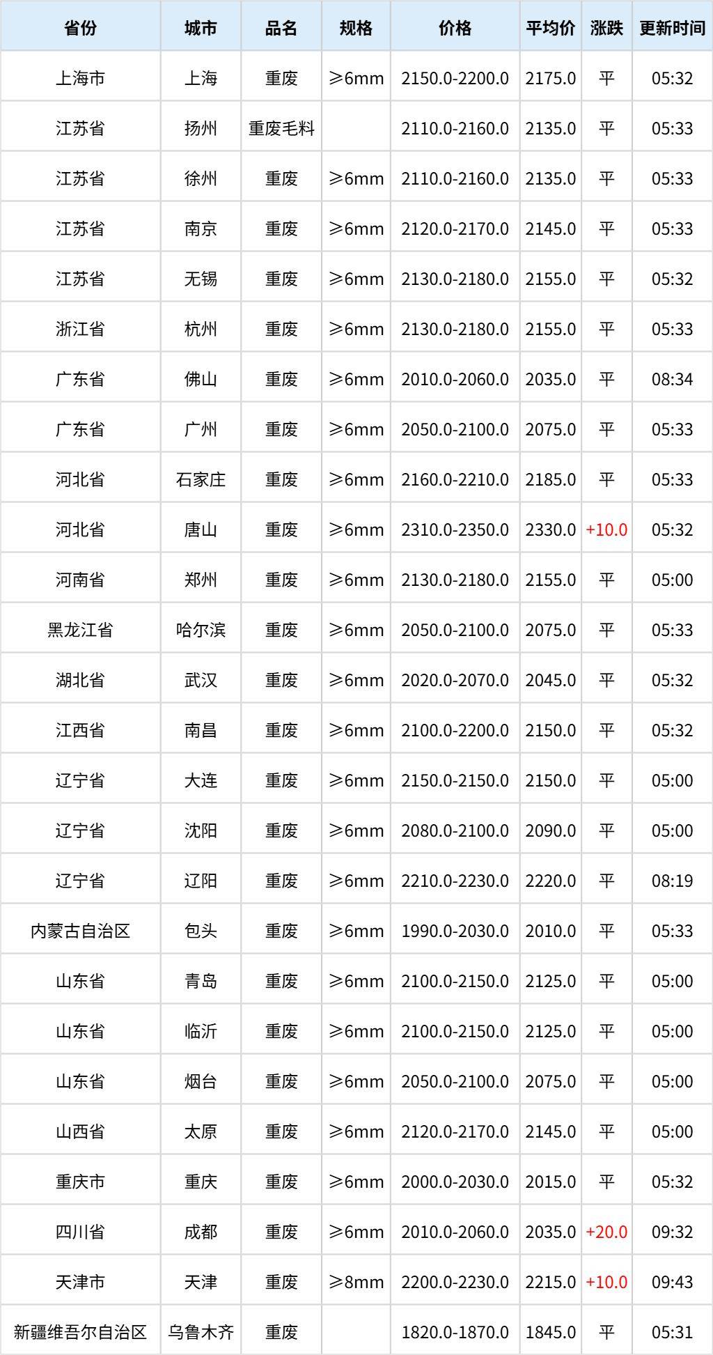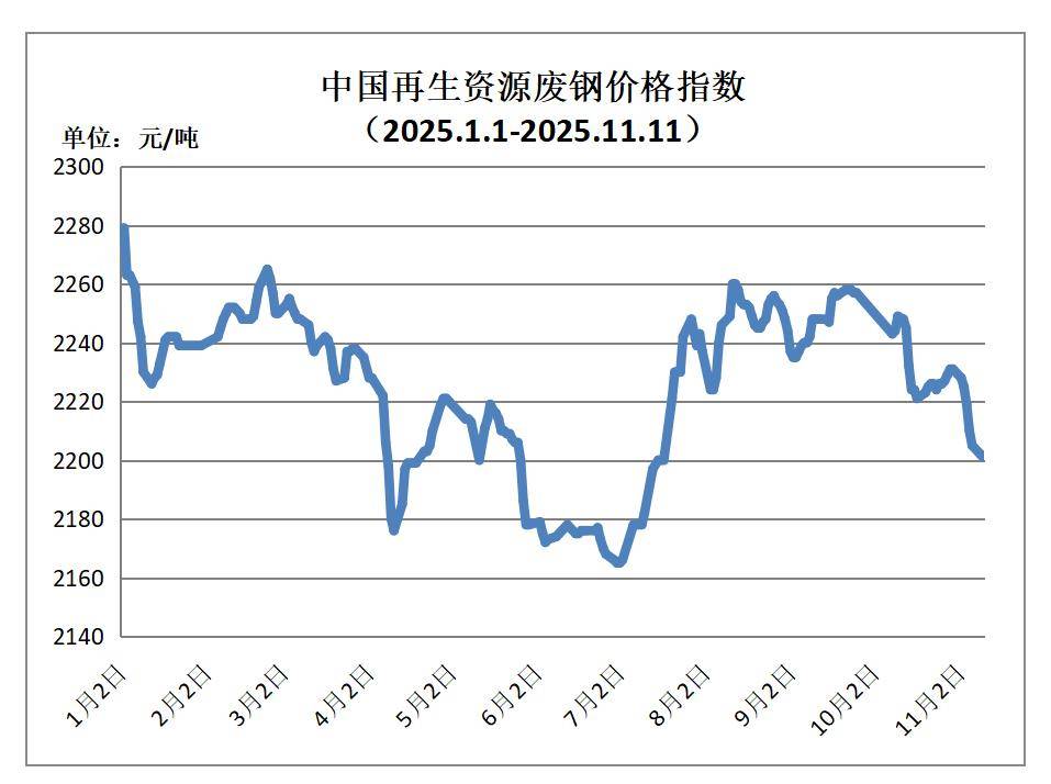 今日中国再生资源废钢价格指数为2201元/吨,较上一个工作日下降1元/吨,望废钢厂家密切关注价格指数变化,谨慎交易。
