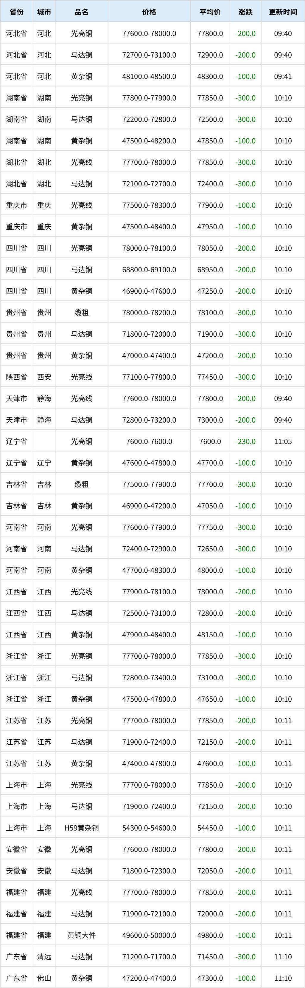 11月18日全国各地废铜价格行情一览