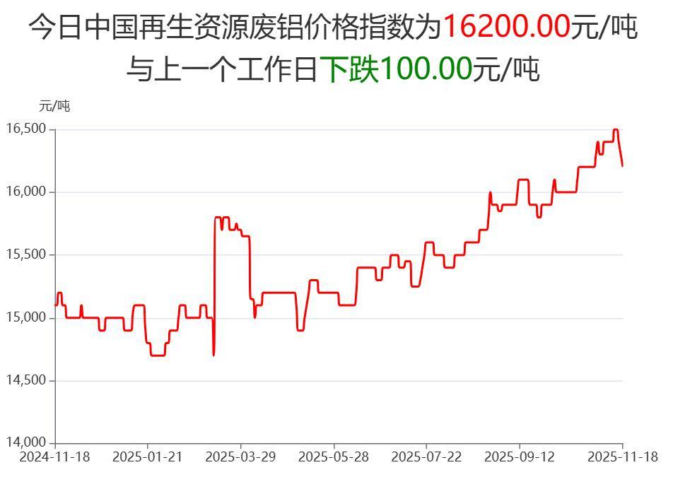 废铝:今日中国再生资源废铝价格为16200元/吨。望当地废铝商家密切关注价格走势,谨慎操作!