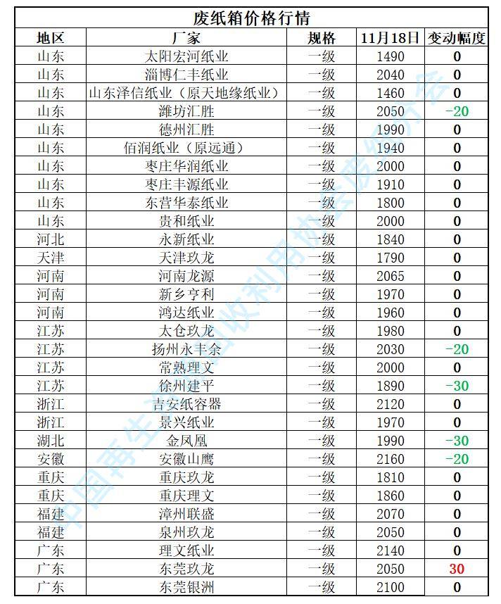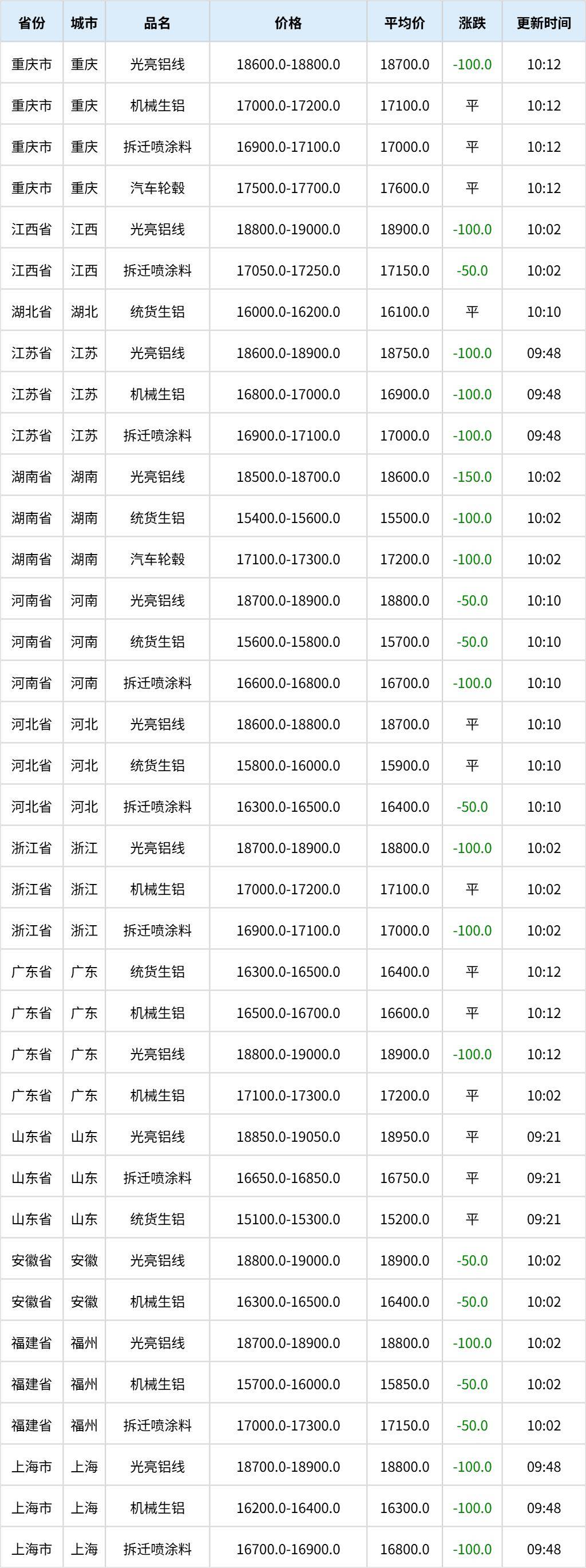 11月18日全国各地废铝价格行情一览