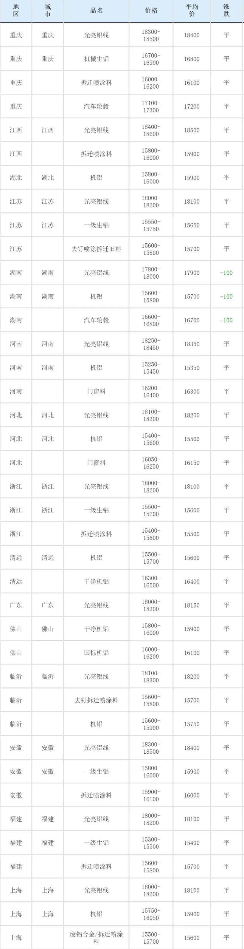 废铝:今日中国再生资源废铝价格为15650元/吨。望当地废铝商家密切关注价格走势,谨慎操作!