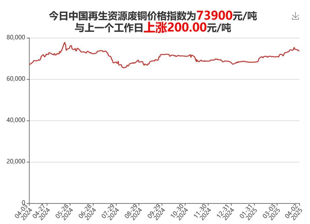 废铜:今日中国再生资源废铜价格为73900元/吨。望当地废铜商家密切关注价格走势,谨慎操作!